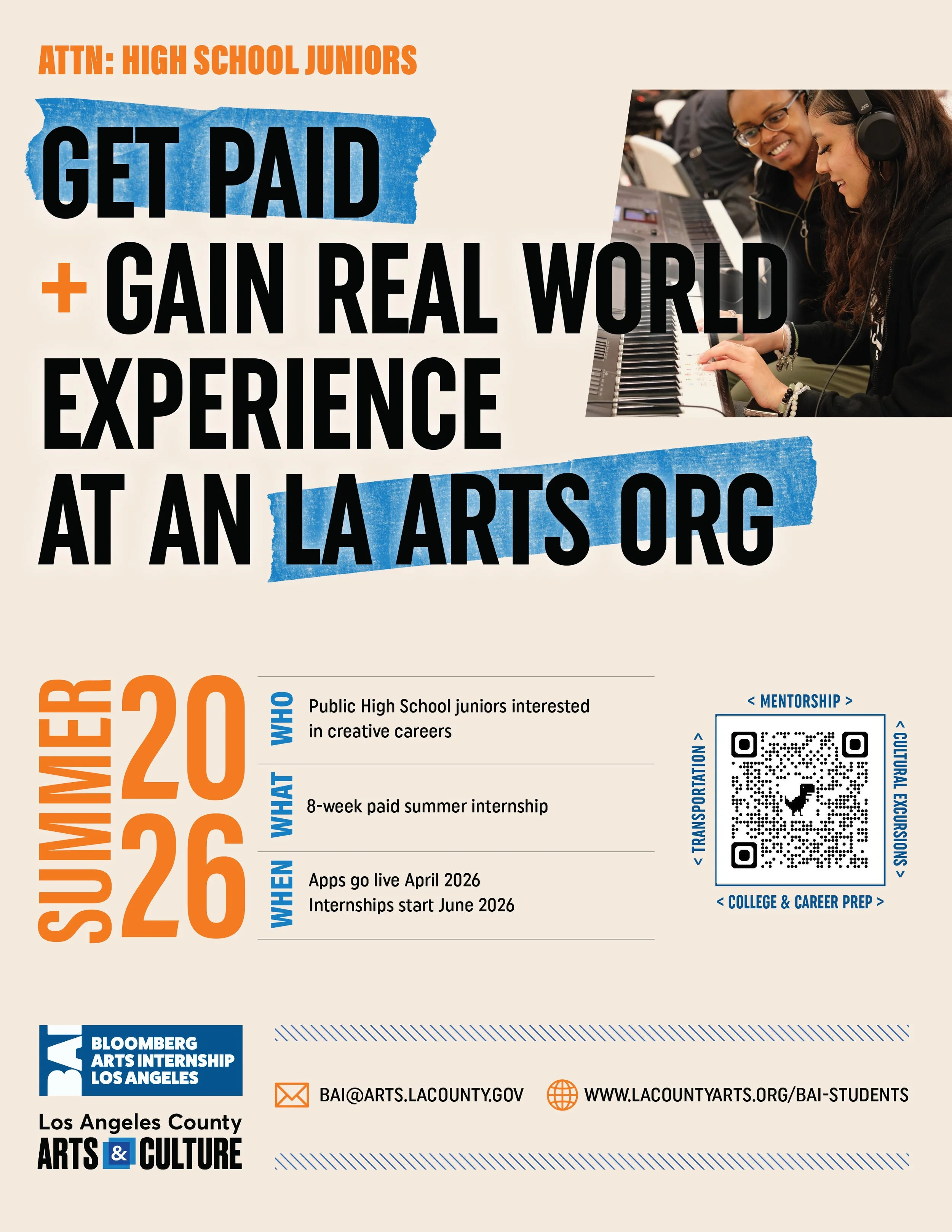 ELIGIBILITY: Public school students entering their junior of senior year of high school, residing in close proximity to our Echo Park location at 1714 W. Sunset Blvd.